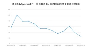 2025年2月,奥迪Q3 Sportback销量为127辆,同比下降55.75%,环比下降33.51%。2024年02月-2025年02月份,奥迪Q3 Sportback销量为3713辆,同比下降48.87%。