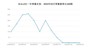 2025年2月,ID.6 X销量为2辆,同比下降98%,环比持平。2024年02月-2025年02月份,ID.6 X销量为1449辆,同比下降77.23%。