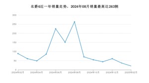 2025年2月,名爵6销量为21辆,同比下降76.4%,环比下降43.24%。2024年02月-2025年02月份,名爵6销量为1213辆,同比下降56.23%。