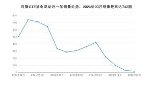 2025年2月,迈腾GTE插电混动销量为15辆,同比下降97.01%,环比下降48.28%。2024年02月-2025年02月份,迈腾GTE插电混动销量为4674辆,同比下降65.38%。