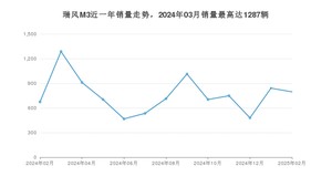 2025年2月,瑞风M3销量为796辆,同比增长18.1%,环比下降5.35%。2024年02月-2025年02月份,瑞风M3销量为9868辆,同比下降37.62%。