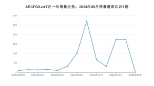 2025年2月,ARCFOX αT销量为1辆,同比下降90%,环比下降99.42%。2024年02月-2025年02月份,ARCFOX αT销量为911辆,同比下降85.77%。