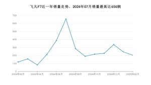 2025年2月,飞凡F7销量为203辆,同比增长70.59%,环比下降17.14%。2024年02月-2025年02月份,飞凡F7销量为3316辆,同比下降76.75%。