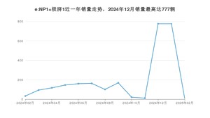 2025年2月,e:NP1 极湃1销量为8辆,同比下降75.76%,环比下降98.97%。2024年02月-2025年02月份,e:NP1 极湃1销量为2577辆,同比下降44.26%。