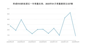 2025年2月,荣威RX5新能源销量为83辆,同比下降69.71%,环比下降84.25%。2024年02月-2025年02月份,荣威RX5新能源销量为3101辆,同比下降39.91%。