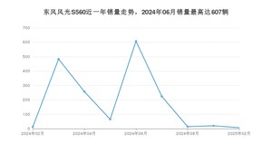 2025年2月,东风风光S560销量为7辆,同比下降41.67%,环比下降65%。2024年02月-2025年02月份,东风风光S560销量为1689辆,同比下降56.99%。