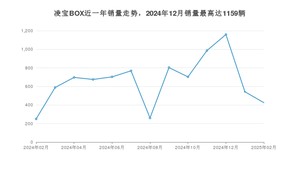 2025年2月,凌宝BOX销量为425辆,同比增长70%,环比下降21.73%。2024年02月-2025年02月份,凌宝BOX销量为8561辆,同比下降16.88%。