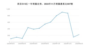 2025年2月,易至EV3销量为229辆,同比增长126.73%,环比增长52.67%。2024年02月-2025年02月份,易至EV3销量为5717辆,同比增长339.77%。