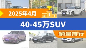2025年4月40-45万SUV销量排行榜,沃尔沃XC60屈居第三