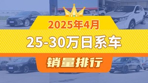 2025年4月25-30万日系车销量排行榜,凯美瑞夺得冠军,第二名差距也太大了