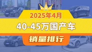 2025年4月40-45万国产车销量排行榜,领克03以5793辆夺冠,北京BJ80升至第10名