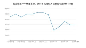 在国内市场上,比亚迪,在2025年5月的销量为87012辆,同比下降35.41%,环比下降1.3%。2024年05月-2025年05月份,比亚迪累计销量为1597839辆,较去年同期下降18.86%。