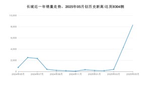 在国内市场上,长城,在2025年5月的销量为8304辆,同比增长1%,环比增长93.7%。2024年05月-2025年05月份,长城累计销量为19909辆,较去年同期下降75.47%。