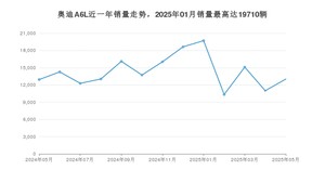 2025年5月,奥迪A6L销量为13027辆,同比增长0.67%,环比增长18.43%。2024年05月-2025年05月份,奥迪A6L销量为186221辆,同比下降8.24%。