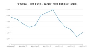 2025年5月,宝马X3销量为4138辆,同比下降55.88%,环比增长50.91%。2024年05月-2025年05月份,宝马X3销量为97486辆,同比下降18.3%。
