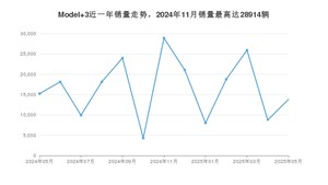 2025年5月,Model 3销量为13818辆,同比下降9.27%,环比增长57.97%。2024年05月-2025年05月份,Model 3销量为214957辆,同比增长49.65%。