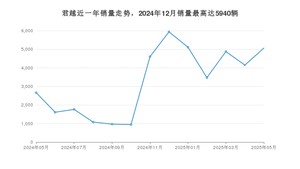 2025年5月,君越销量为5065辆,同比增长90.27%,环比增长22.08%。2024年05月-2025年05月份,君越销量为42250辆,同比增长39.97%。