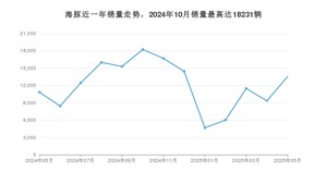 2025年5月,海豚销量为13547辆,同比增长25.06%,环比增长45.26%。2024年05月-2025年05月份,海豚销量为157344辆,同比下降39.69%。