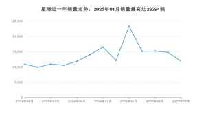 2025年5月,星瑞销量为11843辆,同比增长8.7%,环比下降19.84%。2024年05月-2025年05月份,星瑞销量为177113辆,同比增长11.63%。