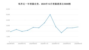 2025年5月,锐界销量为2759辆,同比增长44.75%,环比增长6.69%。2024年05月-2025年05月份,锐界销量为34408辆,同比增长9.82%。