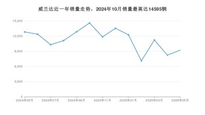 2025年5月,威兰达销量为9209辆,同比下降28.12%,环比增长11.92%。2024年05月-2025年05月份,威兰达销量为147405辆,同比下降6.75%。