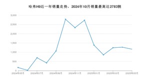 2025年5月,哈弗H9销量为1163辆,同比增长592.26%,环比下降8.43%。2024年05月-2025年05月份,哈弗H9销量为16126辆,同比增长203.92%。