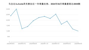 2025年5月,马自达3 Axela昂克赛拉销量为994辆,同比下降58.5%,环比下降16.54%。2024年05月-2025年05月份,马自达3 Axela昂克赛拉销量为24903辆,同比下降56.04%。