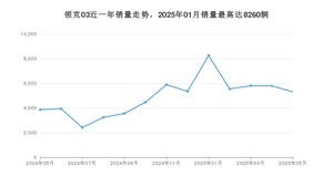 2025年5月,领克03销量为5307辆,同比增长37.38%,环比下降8.39%。2024年05月-2025年05月份,领克03销量为63388辆,同比下降17.59%。