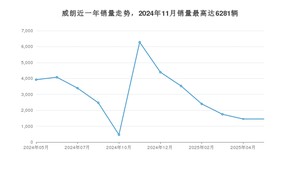 2025年5月,威朗销量为1455辆,同比下降62.92%,环比增长0.07%。2024年05月-2025年05月份,威朗销量为35595辆,同比下降67.36%。