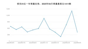 2025年5月,领克01销量为407辆,同比下降40.67%,环比下降71.16%。2024年05月-2025年05月份,领克01销量为8269辆,同比下降44.19%。
