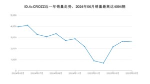 2025年5月,ID.4 CROZZ销量为2600辆,同比下降34.36%,环比下降2%。2024年05月-2025年05月份,ID.4 CROZZ销量为34489辆,同比下降27.27%。