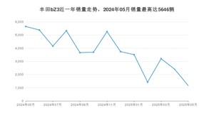 2025年5月,丰田bZ3销量为1162辆,同比下降79.42%,环比下降51.62%。2024年05月-2025年05月份,丰田bZ3销量为48570辆,同比增长12.96%。
