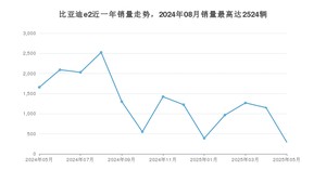 2025年5月,比亚迪e2销量为293辆,同比下降82.32%,环比下降74.5%。2024年05月-2025年05月份,比亚迪e2销量为16862辆,同比下降37.33%。