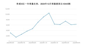 2025年5月,荣威i5销量为6318辆,同比增长105.66%,环比增长3.03%。2024年05月-2025年05月份,荣威i5销量为74456辆,同比增长50.64%。