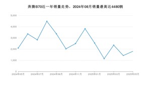 2025年5月,奔腾B70销量为1800辆,同比下降13.75%,环比增长26.85%。2024年05月-2025年05月份,奔腾B70销量为33689辆,同比下降33.45%。
