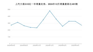 2025年5月,上汽大通G10销量为268辆,环比下降18.04%。2024年05月-2025年05月份,上汽大通G10销量为3688辆,同比下降52.52%。