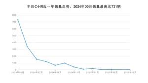 2025年5月,丰田C-HR销量为3辆,同比下降99.59%,环比增长50%。2024年05月-2025年05月份,丰田C-HR销量为1595辆,同比下降86.2%。
