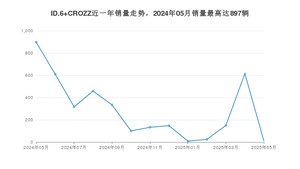 2025年5月,ID.6 CROZZ销量为12辆,同比下降98.66%,环比下降98.05%。2024年05月-2025年05月份,ID.6 CROZZ销量为3810辆,同比下降61.06%。