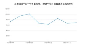 2025年5月,五菱宏光V销量为6900辆,环比增长3.87%。2024年05月-2025年05月份,五菱宏光V销量为61816辆,