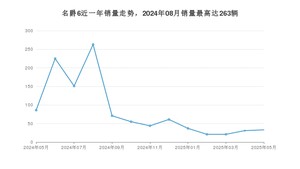 2025年5月,名爵6销量为33辆,同比下降61.63%,环比增长6.45%。2024年05月-2025年05月份,名爵6销量为1099辆,同比下降44.3%。