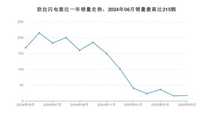 2025年5月,欧拉闪电猫销量为17辆,同比下降89.88%,环比增长6.25%。2024年05月-2025年05月份,欧拉闪电猫销量为1494辆,同比下降82.59%。
