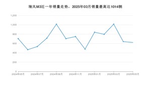 2025年5月,瑞风M3销量为621辆,同比下降11.66%,环比下降2.97%。2024年05月-2025年05月份,瑞风M3销量为9272辆,同比下降32.61%。