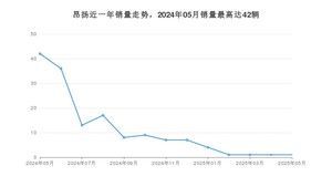 2025年5月,昂扬销量为1辆,同比下降97.62%,环比持平。2024年05月-2025年05月份,昂扬销量为147辆,同比下降91.35%。