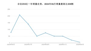 2025年5月,合创Z03销量为5辆,同比下降93.59%,环比下降76.19%。2024年05月-2025年05月份,合创Z03销量为677辆,同比下降92.44%。