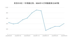 2025年5月,易至EV3销量为410辆,同比下降6.61%,环比增长37.12%。2024年05月-2025年05月份,易至EV3销量为6367辆,同比增长226.51%。