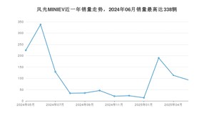 2025年5月,风光MINIEV销量为93辆,同比下降58.48%,环比下降17.7%。2024年05月-2025年05月份,风光MINIEV销量为1260辆,同比下降71.27%。
