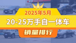 2025年5月20-25万手自一体车销量排行榜,亚洲龙位居第二,第一名你绝对想不到