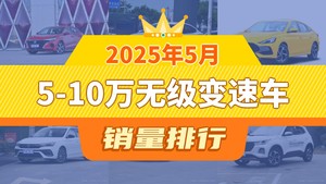2025年5月5-10万无级变速车销量排行榜,秦PLUS位居第二,第一名你绝对想不到