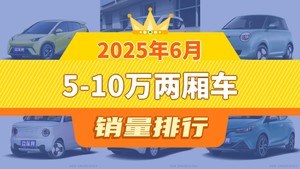 2025年6月5-10万两厢车销量排行榜,宏光MINI EV位居第二,第一名你绝对想不到