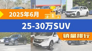 2025年6月25-30万SUV销量排行榜,Model Y夺得冠军,第二名差距也太大了